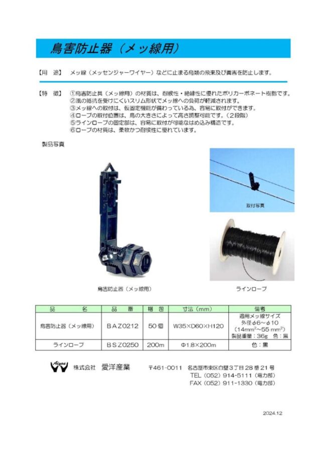 「鳥害防止器(メッ線用)」を販売開始致します。